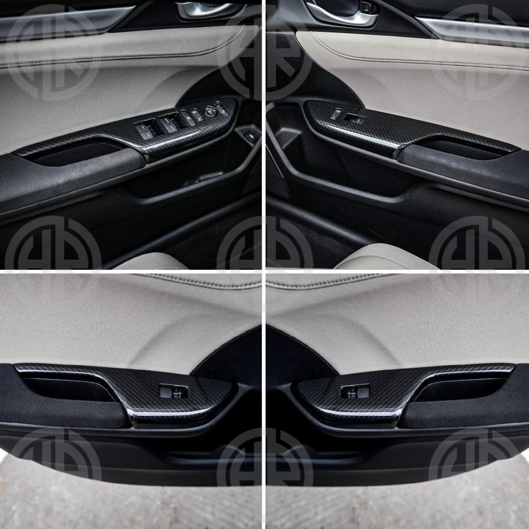 Give your Honda Civic’s interior a stylish upgrade with these premium carbon fiber power window trims. Designed for a perfect fit, they enhance the look of your doors while offering durability and protection against daily wear. Easy to install and built to last, these trims add a sporty, modern touch to your Civic.