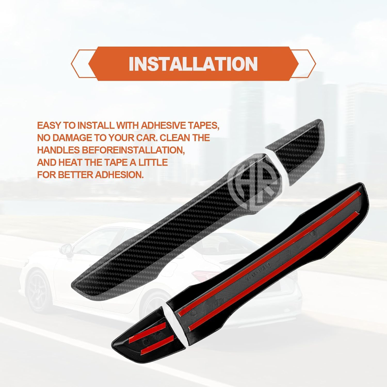 Enhance the look of your Honda Civic (2016–2021) with these stylish carbon fiber door handle covers. Built for durability and a sleek finish, they protect your handles from scratches while adding a sporty, premium touch to your car’s exterior.